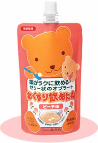 龍角散 特許取得 薬がラクに飲めるゼリー状のオブラートおくすり飲めたね ピーチ味 200g 価格: 283円 レビュー評価: 3.75 レビュー数:4 ご使用方法ゼリーに包み込むようにして服用してください。大きめのスプーンに本品をのせ薬剤をからめてご使用ください。コップなどの容器に本品をいれ、薬剤をのせてスプーンですくう方法も有効です。原材料エリスリトール、寒天、甘味料(ソルビトール、ステビア)、ゲル化剤(増粘多糖類)、酸味料、乳酸カルシウム、香料、 アナトー色素、クチナシ色素栄養成分1袋(200g)中熱量 46kcaL たんぱく質 0g 脂質 0g 炭水化物 31.2g ナトリウム 30mg 糖類 0g ショ糖 0g a.gnavi05 { background-image:url('http://image.rakuten Supported by 楽天ウェブサービス |