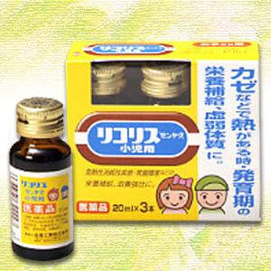 SOY受賞記念セール対象店★ポイント5倍【全薬工業】リコリス小児用 20ml×3本入×2個セット【第3類医薬品】 価格: 1,134円 レビュー評価: 5.0 レビュー数:2 ◆特長・キャッチフレーズ◆幼小児の発育期・偏食児・発熱性消耗性疾患・病中病後・胃腸障害・栄養障害などの栄養補給、虚弱体質、滋養強壮◆メーカー◆全薬工業株式会社◆用法・容量◆3才以上15才未満=1回1びん(20mL)を1日3回服用してください。3才未満は服用しないでください。◆成 分◆【1びん20mL中】カンゾウ(甘草)エキス 100mg(原生薬換算量 500mg)、グルコン酸カルシウム 100mg、リボフラビン(ビタミンB2)0.67mg、オロチン酸コリン 25mg、アミノエチルスルホン酸 100mg、パンテノール 3.33mg添加物としてアルコール、安息香酸Na、パラベン、カラメル、チンピチ Supported by 楽天ウェブサービス |